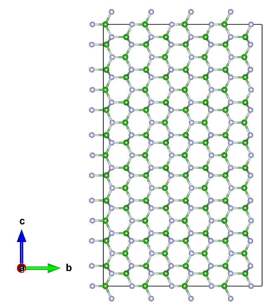 我们已经测试过了一维材料的长边分别摆放在 XYZ 三个方向时,对计算效率的影响,并通过测试结果给出了建议,参考 ABACUS 如何选择晶胞朝向获得最佳并行效率?以碳纳米管为例 · GitBook。现在我们考虑一个二维六方氮化硼体系,即材料在两个方向的长度明显大于第三个方向。