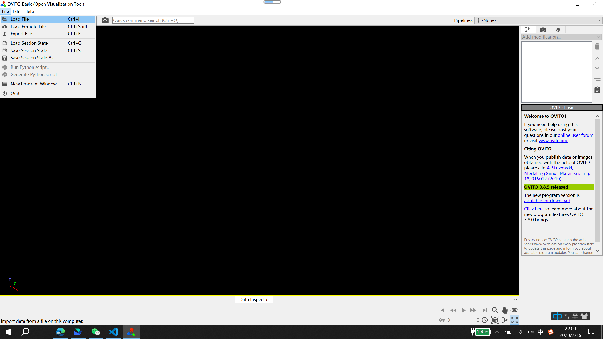 打开 OVITO,点击左上角 load file,选择上一步的 data.gro 文件