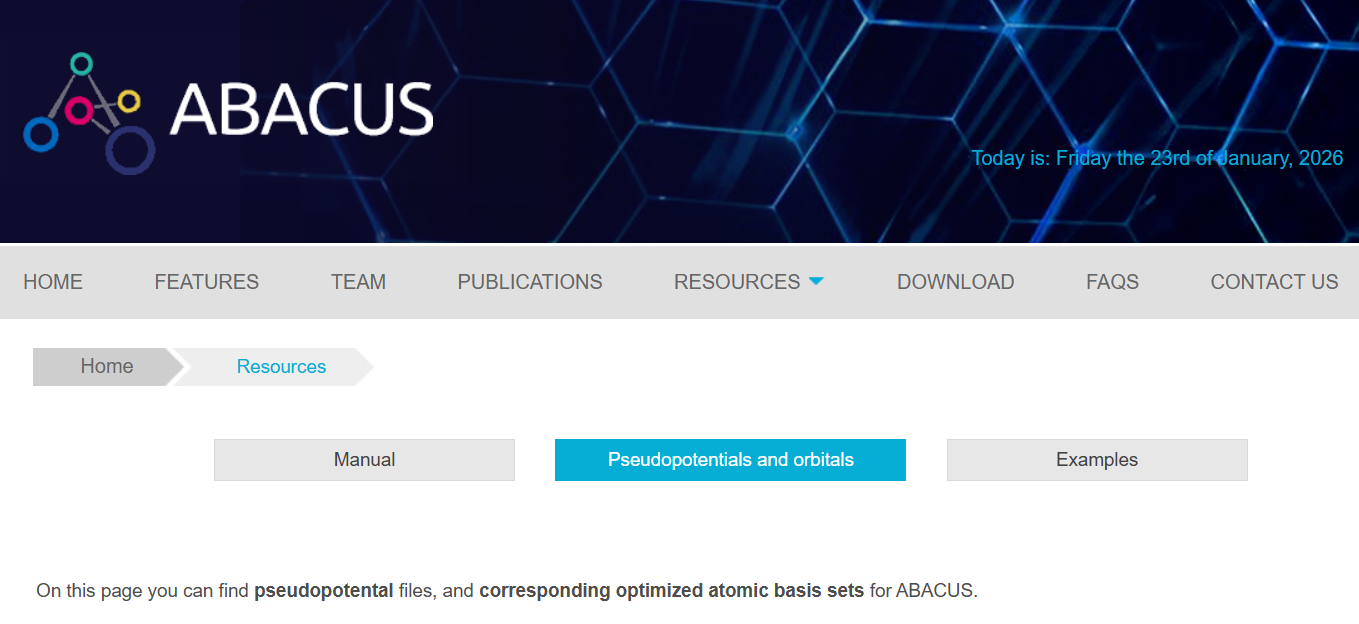 ABACUS 官网 提供了一系列可快速获取和使用的赝势库和轨道库