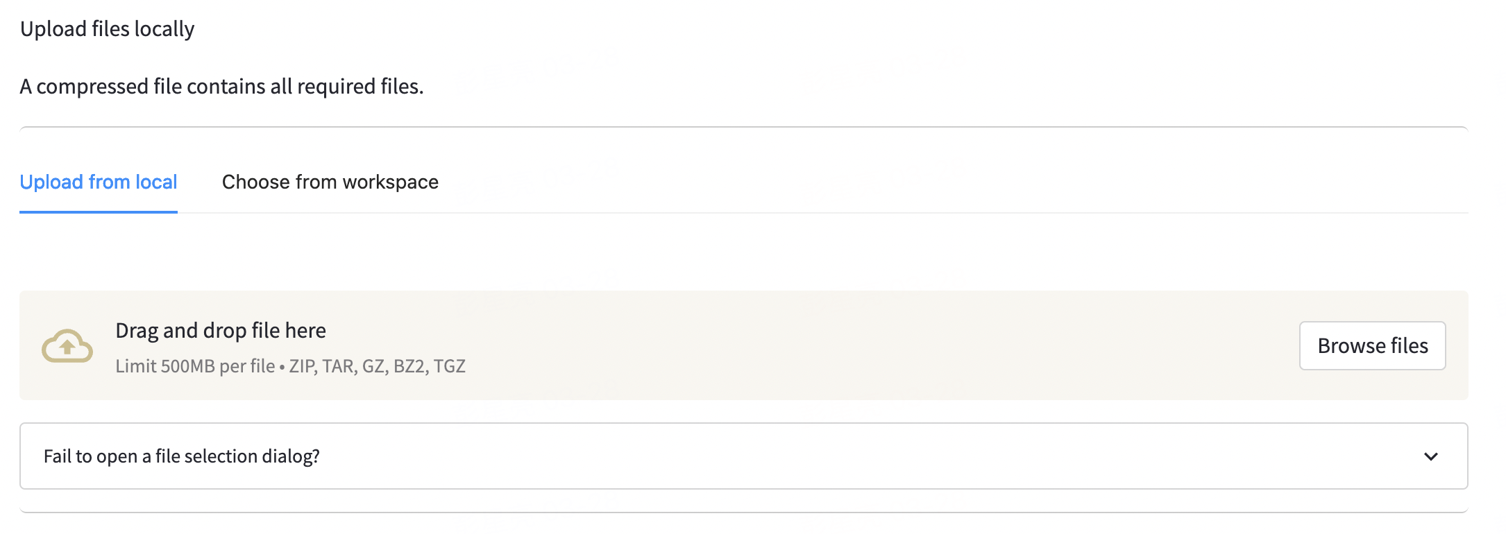 Upload files locally 处,上传准备好的算例压缩包。完成后在页面的最后处点击 Next,进入下一页的设置。