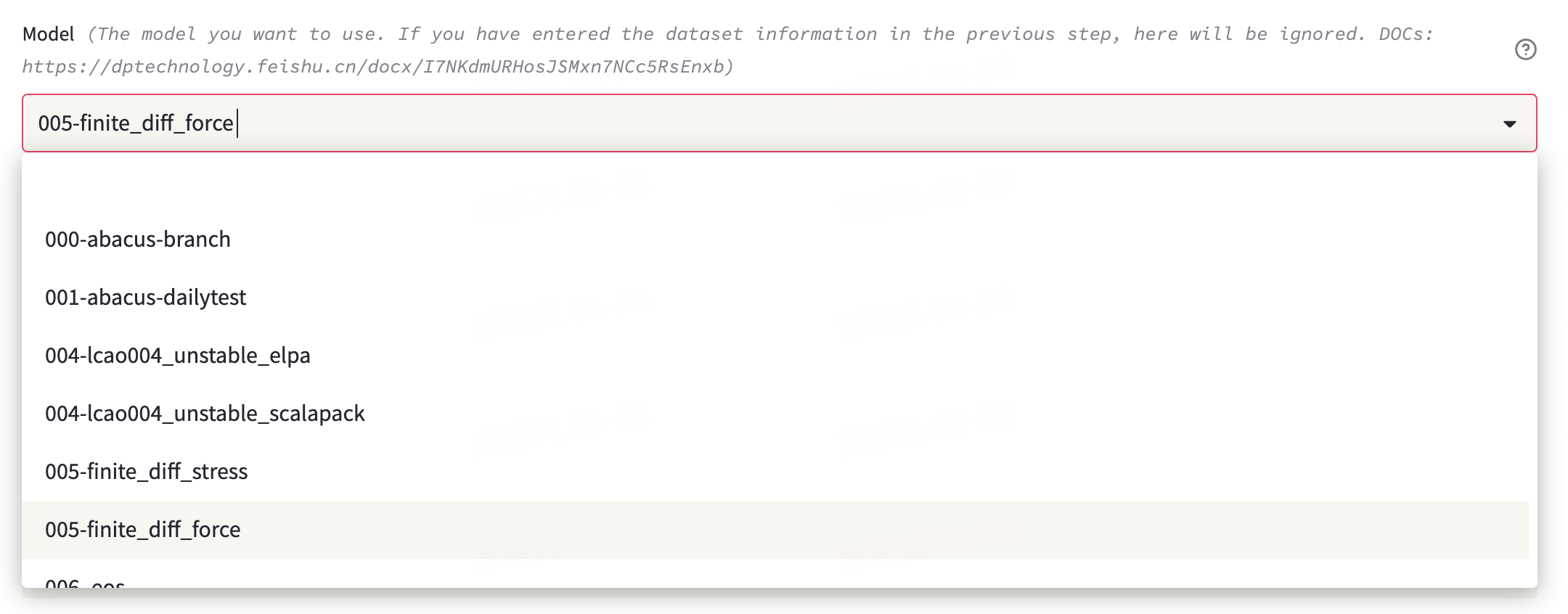 • Rundft Image 可以对进行 abacus 计算使用的镜像进行设置,此处不填会使用默认的 abacus 的 intel latest 镜像:registry.dp.tech/deepmodeling/abacus-intel:latest