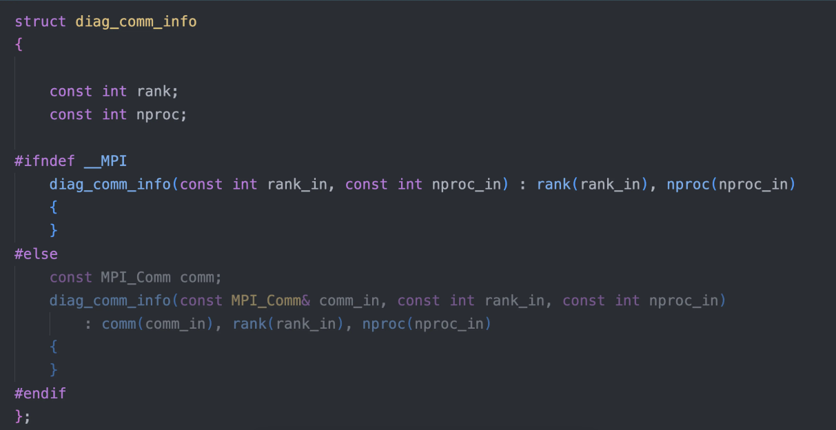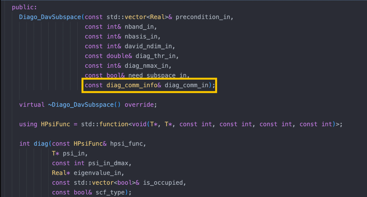 • Hsolver 的求解一定会需要并行,对于开发者来说,清楚当前 Hsolver 采用的并行策略是十分重要的。因此我们的代码应该显示的表现当前 Hsolver 的并行方式。
