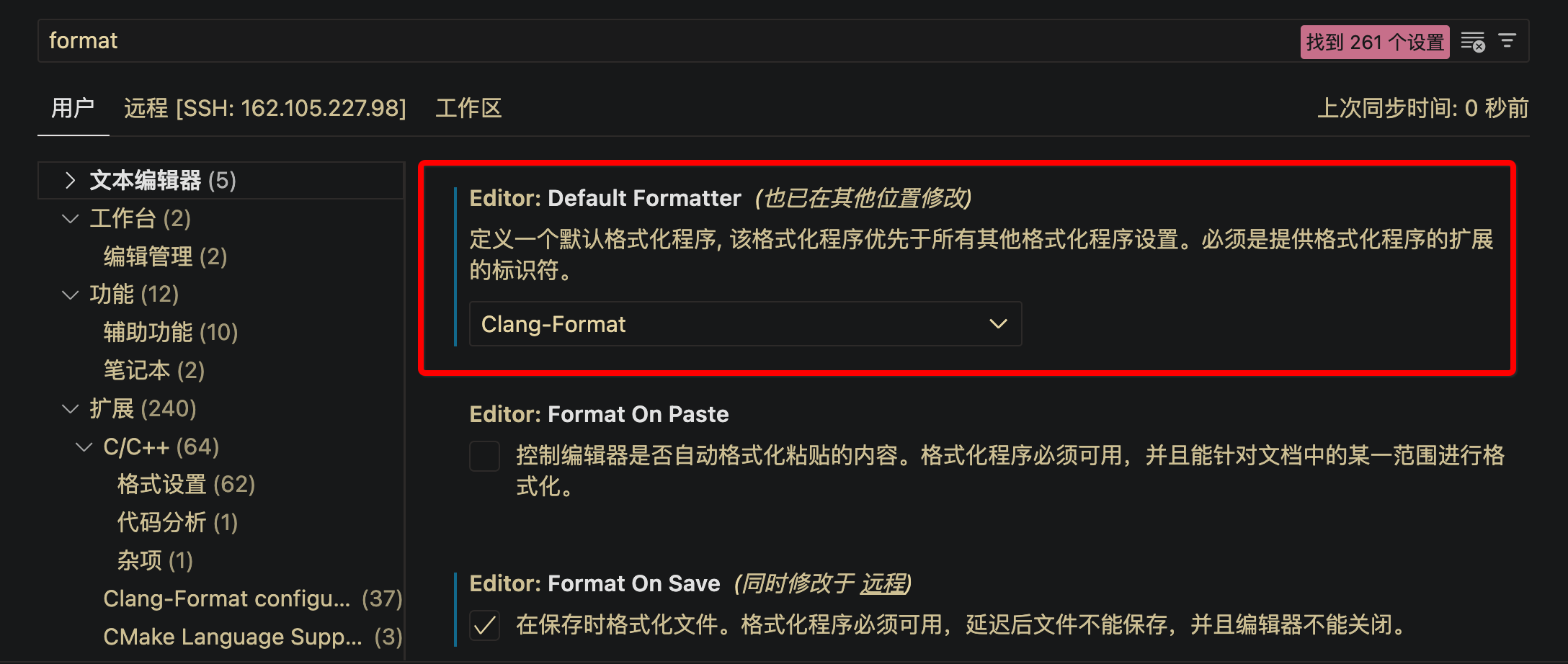 将 Default Formatter 刚换为新下载的 Clang-Format 插件。