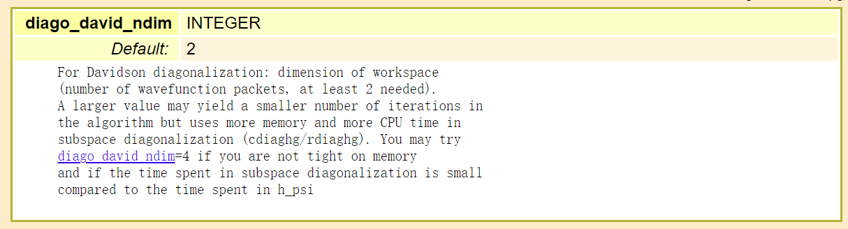 在 ABACUS 中,首先对角化子空间维数为 nbnd,若有部分本征值无法收敛,则使子空间维数递增,直到子空间维数增至 ndim*nbnd,然后重新开始计算 Hamiltonian 矩阵(refresh(),保留最初始 psi,即 ndim≥2 必须满足,从 dim=2 开始覆盖),直到达到最大迭代次数或收敛。