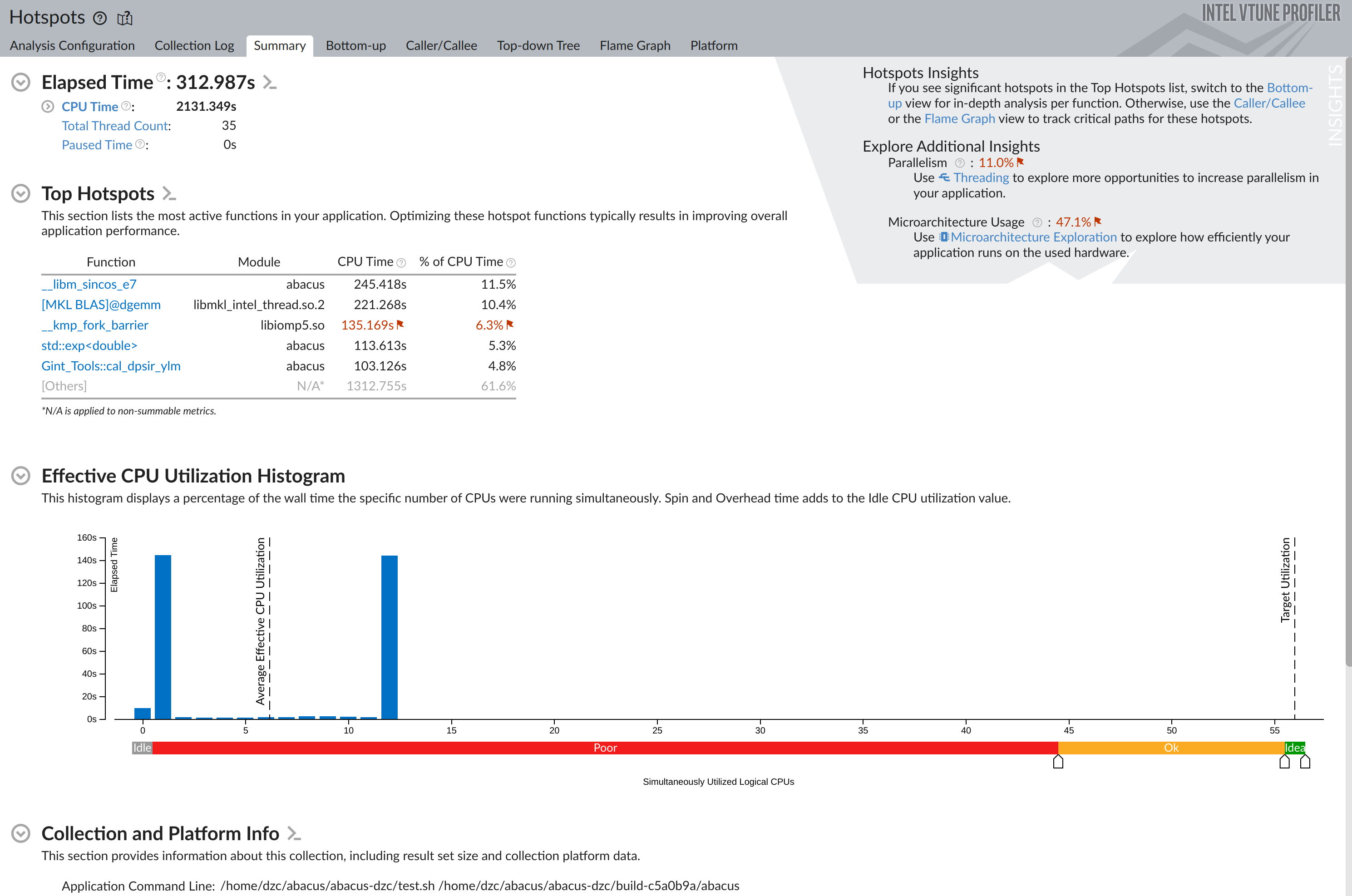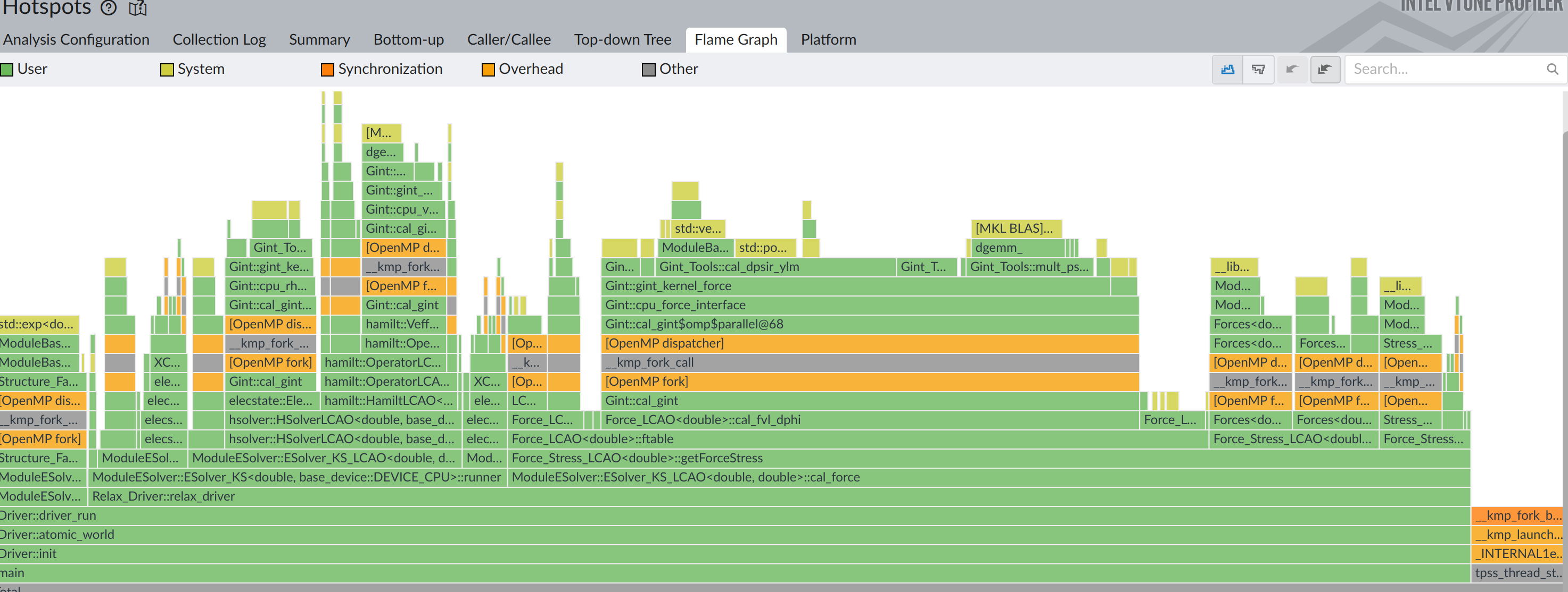 vtune 是 intel 开发的性能分析工具,可以帮助开发者很方便的找到程序中的热点函数,进而优化程序效率。虽然 ABACUS 自带统计函数运行时间的 timer,但是 ABACUS 的 timer 比较粗糙,它自身会带来很大的运行开销,所以 ABACUS 的 timer 只适合用来看程序中各部分耗时的大概比例,不适合用来对大量调用的单个函数进行细致调优。